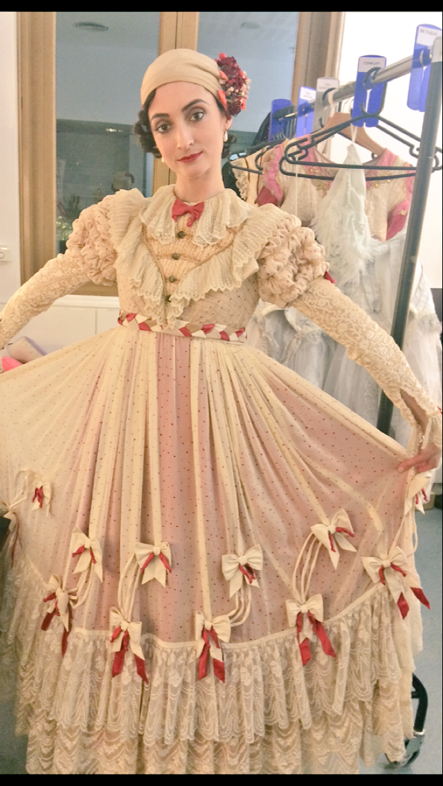 Here is an up-close look at our beautiful and intricate costumes for Sir Peter Wright's 'The Nutcracker'. These were taken behind the scenes on Monday night's show. By far my favourite is Isabel's 'Reveller' costume, the detail is stunning. I would wear this out on the town with killer high heels and minimal make up... this is obviously minus the apron!!