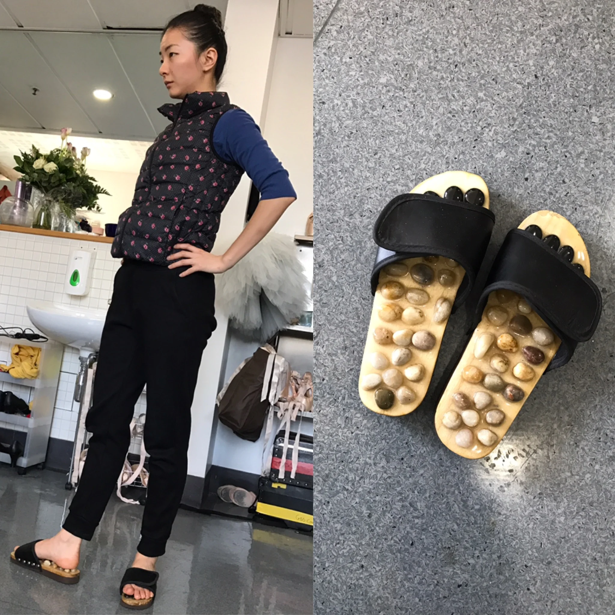 We don’t use any fancy massage tools just two tennis balls inside a tubi grip does the trick. It gets those tight muscles loosened, it’s light in your ballet bag and very cheap !